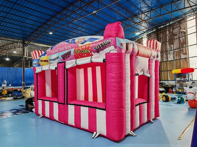The Grand Carnival Inflatable Booth features vibrant red-and-white carnival stripes and a spacious layout, making it the ultimate centerpiece for any fun-filled event. It instantly creates an inviting atmosphere where guests of all ages can engage in classic carnival-style fun.