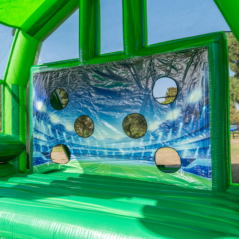 Level up your next event with our Soccer Goal 2-in-1 Trainer inflatable game—packed with high-energy, head-to-head competition for kids, teens, and adults. This interactive attraction lets two players compete at once, battling to score the most points by kicking soccer balls into specific goal zones. From school carnivals and field days to corporate events, fundraisers, church gatherings, and backyard parties, it’s an instant crowd-pleaser that brings out the fun, skill, and team spirit.